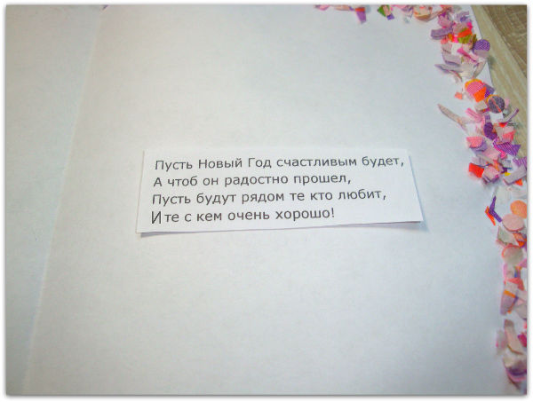 По - желанию внутреннюю часть открытки тоже можно украсить красивыми конфетти (я использовала яркую салфетку, нарезанную на мелкие кусочки):