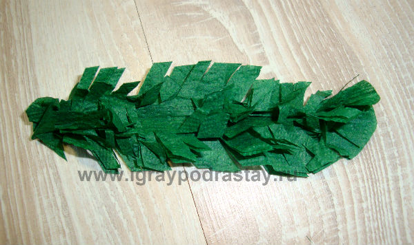Сложите заготовку вдвое, ножницами сделайте косые надрезы, имитирующие еловую хвою.