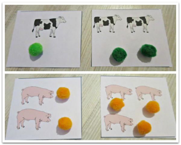 Файл с карточками «Один-много» вы сможете найти в конце этого поста. «Давать» зверятам можно все что есть под рукой (бусинки, макароны и т.п.).