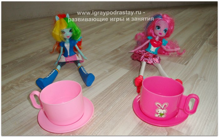 Устройте чаепитие для игрушек! Каждой игрушке выдайте чашечку и предложите малышу правильно подобрать блюдце к чашке (если ребенок затрудняется – обязательно выполните задание вместе – посмотрев как его выполняет мама, малыш быстро разберется что к чему).
