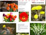 Смотрим презентацию весенние цветы. Скачать ее можно здесь. Обсуждаем с ребенком каждый цветочек, пытаемся запомнить их названия.