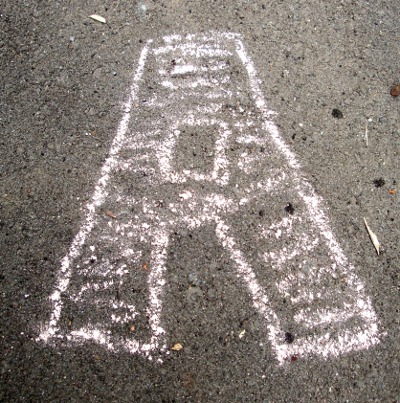 - мама рисует букву на асфальте (так, чтобы ее можно было раскрасить) и просит ребенка раскрасить эту букву мелком.